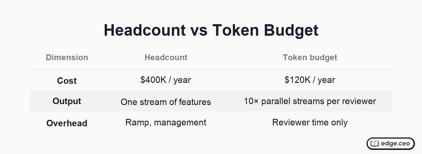 The marginal unit of capacity is now a choice between a headcount and a token budget.